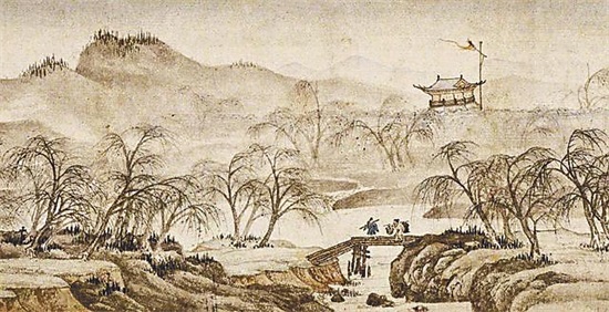折柳送别作为一种时尚,甚至还出现了“折柳桥”的典故。晚唐诗人雍陶曾担任简州刺史,有一次他送客人到城外的情尽桥,对送行到此即止的桥名颇不以为然,于是修建驿馆供迎来送往的客人使用,将桥名改为“折柳桥”,并题诗一首:“从来只有情难尽,何事名为情尽桥?自此改名为折柳,任他离恨一条条。”离恨绵绵,杨柳依依,自然能够引起人们强烈的共鸣。
