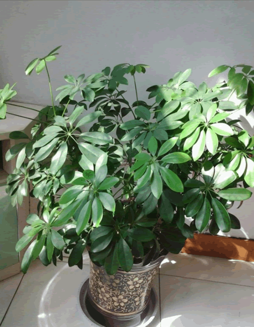 幸福树叶片繁茂,放在家里不仅能够净化空气,吸附灰尘。还能够让人感觉到幸福愉悦,养护简单又方便。它经常作为大型的盆栽绿植,如果长得太高了,可以给它修理打顶,让它多分生侧枝,长得郁郁葱葱的才漂亮。它并不需要充足的光照,有散射光的地方就可以养的很好。