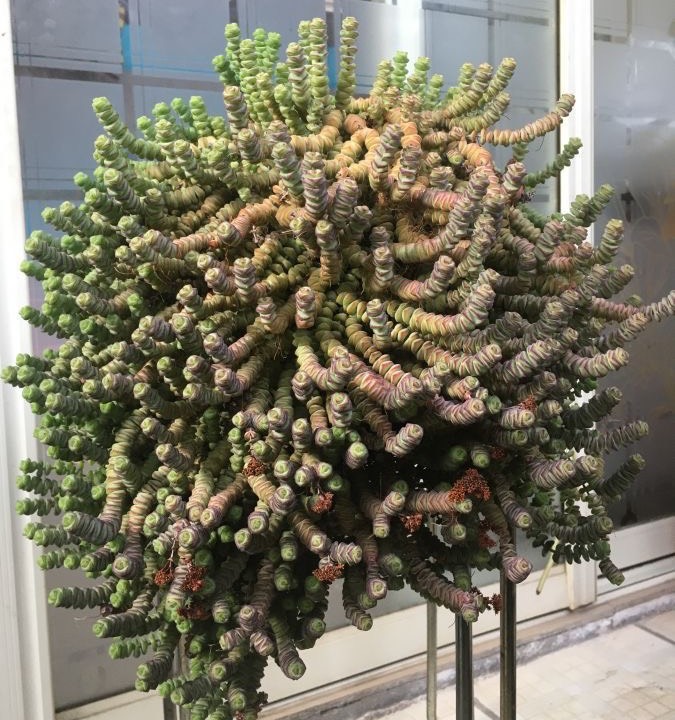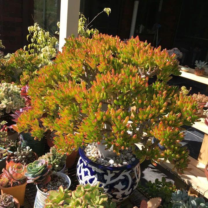 吸纳四面八方之财,吸财树这个名字是不是特别的吉利呢?它的植株非常有趣,叶子是厚厚的,像一个卷卷的吸管一样,能把东西吸进来,所以给它冠名吸财树。吸财树名字也是图一个好的彩头,不过吸财树养好了真的是漂亮无比,还能养成大老桩,它是景天科的多肉植物,它和玉树一样的养法。在秋冬季节多晒晒太阳,它的叶子顶端会呈现粉嫩粉嫩的颜色,如果冻一冻像彩云一样晶莹剔透,非常漂亮。