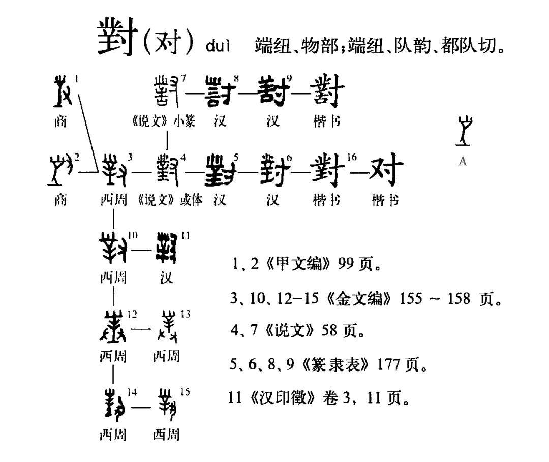 对(拼音:duì)是汉语通用规范一级汉字(常用字)。此字始见于商代甲骨文,发展演变脉络如下: