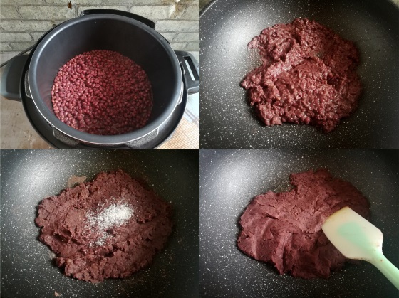 4.红豆沙炒到不粘锅铲,放凉就可以用了。
