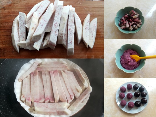 【蓝莓香芋馅】食材:荔浦芋头 130克,自制蓝莓果酱 适量。