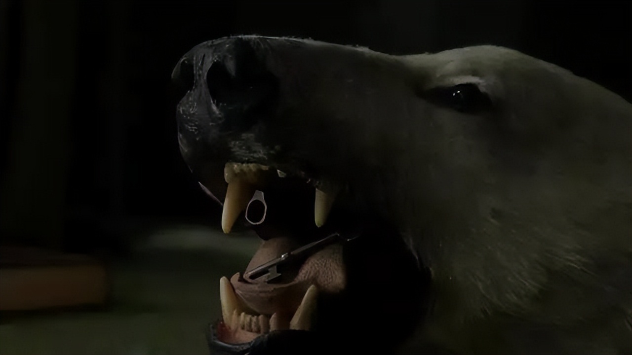 隆巴德是唯一带着枪的人,可是他的枪找不到了,于是大家又有了各种猜疑,而且他们不得不紧张,因为找不到的是凶器,它随时会要了这几个人的命。而枪的下落,大家看到了吧,在地毯上一只北极熊标本的嘴里。这是谁藏的?大家都会问吧。