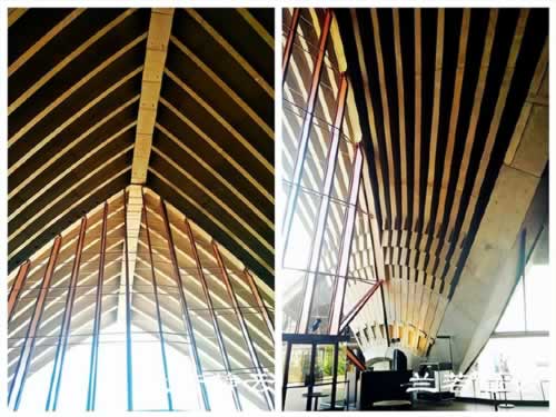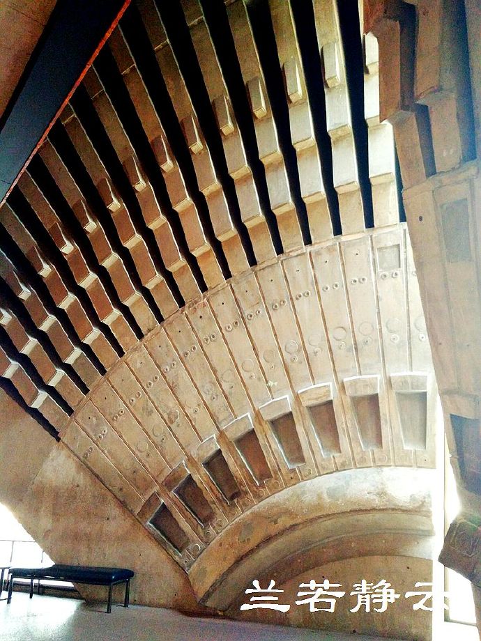 进入内部大厅,马上被这个巨大的扇型“琴键”水泥墙设计所吸引,简直太有创意了!