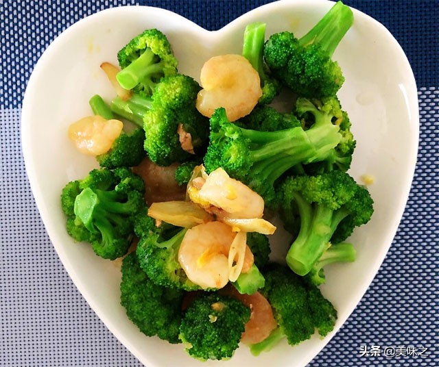 虾仁50g、西兰花1朵、姜丝5g、蒜片1勺、盐适量、菜油1勺、土豆粉1勺。