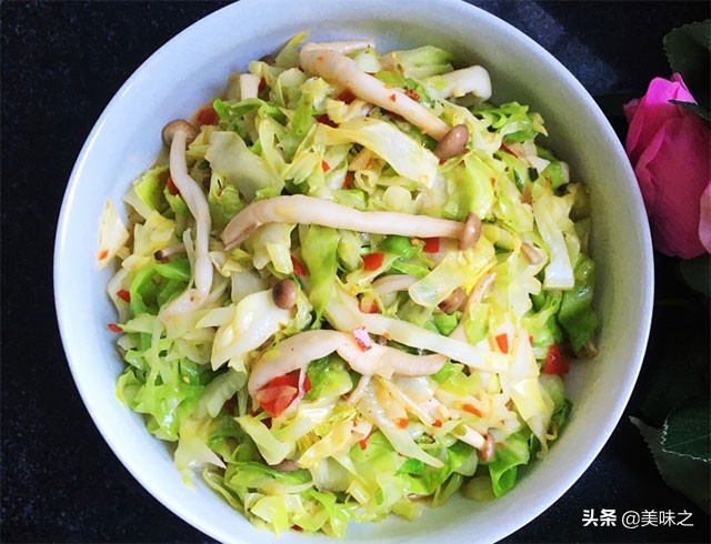包菜适量、蟹味菇适量、葱适量、蒜适量、剁椒适量、油适量、盐适量、五香粉适量。
