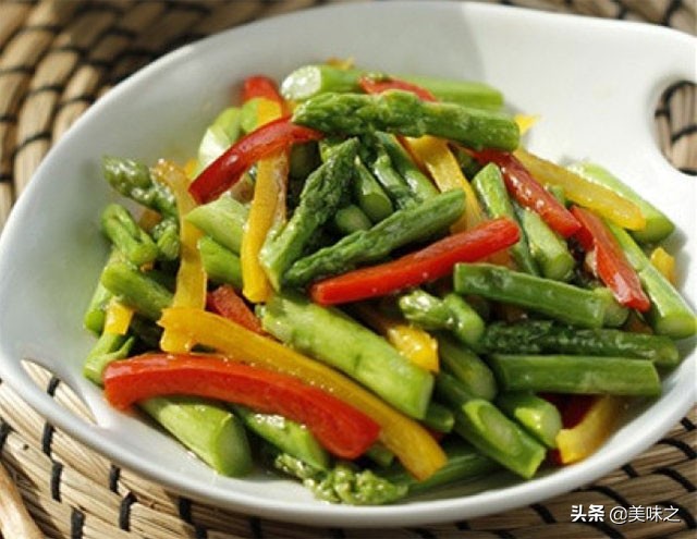 芦笋1小把、红黄彩椒各半个、水淀粉少许、油盐适量。