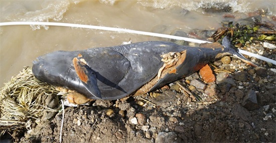 2016年1月23日,洞庭湖东风湖码头发现死亡江豚。张脱冬摄