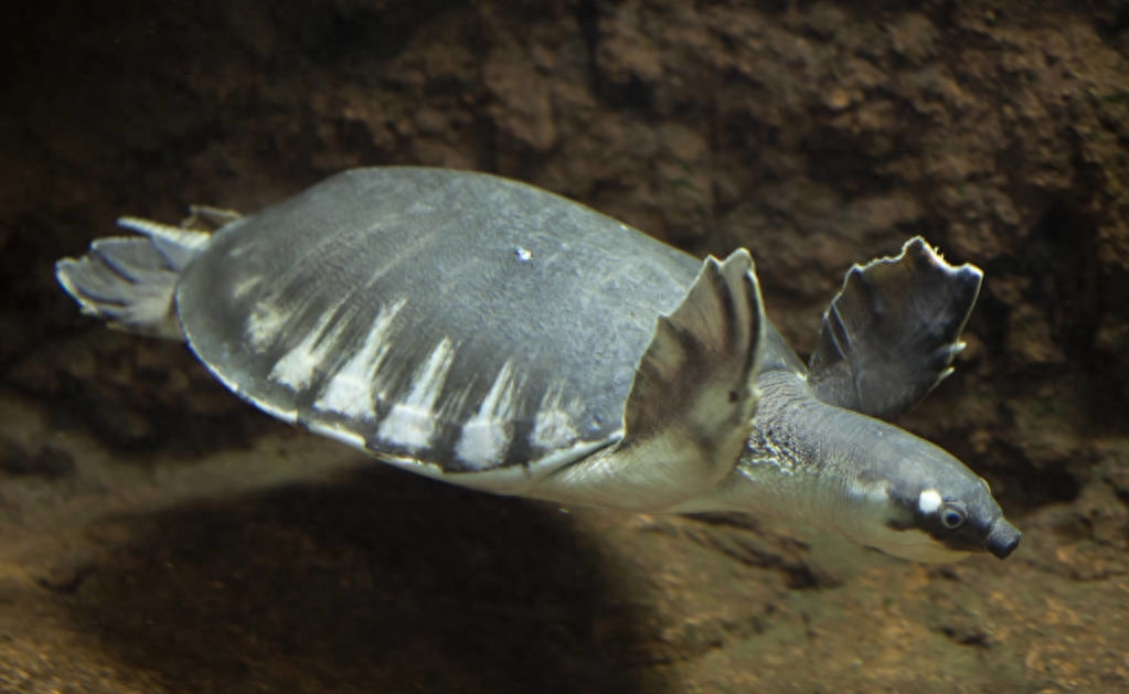 猪鼻龟,又称两爪鳖、飞河龟,龟鳖目曲颈龟亚目两爪鳖科两爪鳖属。猪鼻龟是一种高度水栖的淡水龟类,除了产卵以外,常年生活于水中,因而四肢特化成海龟那样的鳍状肢,这在淡水龟类中是绝无仅有的。仅分布于澳大利亚北部、伊里安查亚南部和新几内亚南部,是两爪鳖科内仅存的唯一品种。