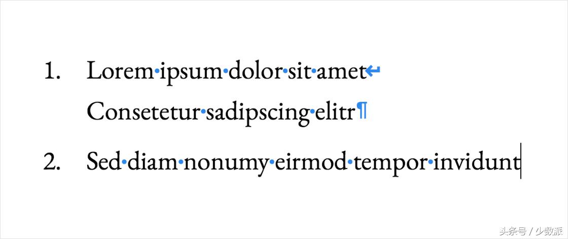 与回车相关的一些疑惑也正来源于这种双重身份。例如,Word 文档打开项目编号时,按下回车就会让段落序号递增,但有时我们只是想让原来的段落新增一行;在微信中,按下键盘右下角的蓝色按键(相当于回车)就会把信息发出去,但有时我们只是想给消息分个段。在这两种情形下,软件都把回车操作理解为控制功能(新建段落或发送消息),尽管我们预期的结果更多是语义上。那么,有没有一个不带控制性含义、纯粹表示换行的「符号」呢?答案是肯定的,这就是所谓的「软回车」,它在 Unicode 中的身份是 U+2028 Line Separator。