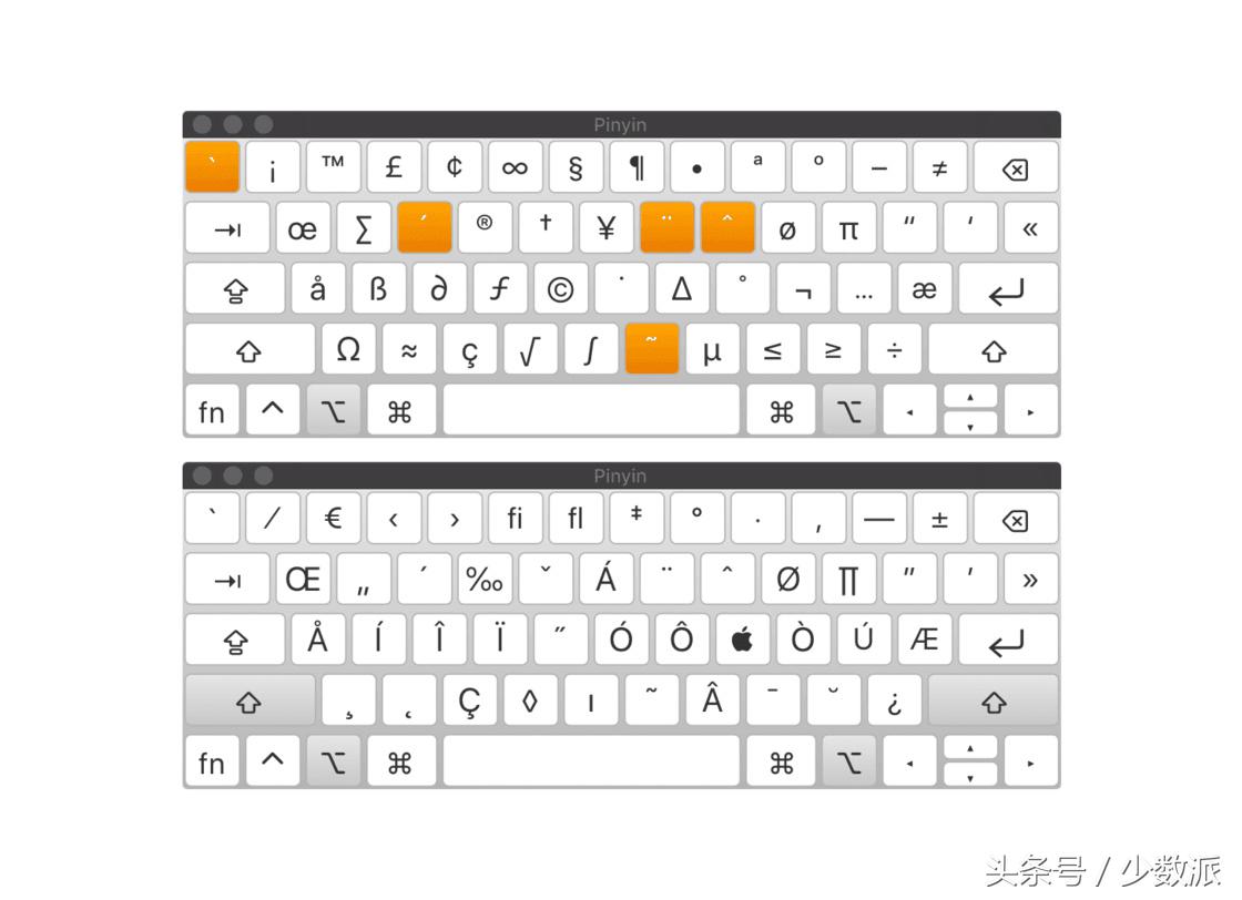 macOS 键盘在按下 Option 和 Option + Shift 时的符号映射
