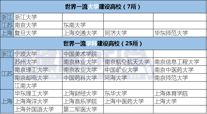 根据教育部最新公布的全国普通高等学校名单(截至2021年9月30日),江浙沪地区共有高校340所,其中本科院校178所,有7所院校是全国首批“双一流”世界一流大学建设高校,25所是全国首批“双一流”世界一流学科建设高校。