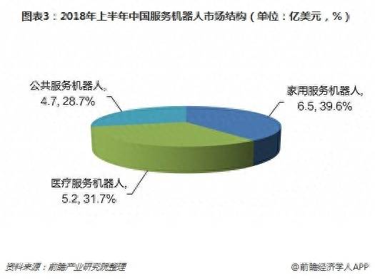 从市场应用结构来看,2018年我国家用服务机器人、医疗服务机器人和公共服务机器人市场规模分别为8.9亿美元、5.1亿美元和4.4亿美元,家用服务机器人和公共服务机器人市场增速相对领先。从细分领域来看,家务机器人占主导位置,市场份额为27.4%。老龄化家庭结构、学前教育娱乐机器人,或将成为服务机器人家庭化发展的两大“支点”。