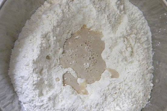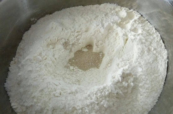 一般一袋安琪高活性干酵母有5g,在器皿内放入4g就已经足够了,继续加入250g面粉搅拌均匀。