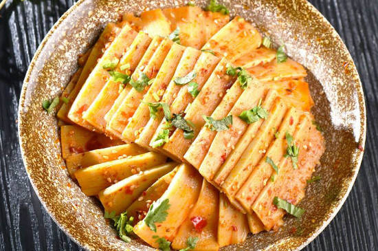 在食用竹笋之前,应将竹笋用开水焯烫6~10分钟,经过高温焯水的竹笋,能减少其含有的草酸,还能使笋没有苦涩感,味道更佳鲜美。焯水后的竹笋的吃法很多,可以清炒、凉拌等。