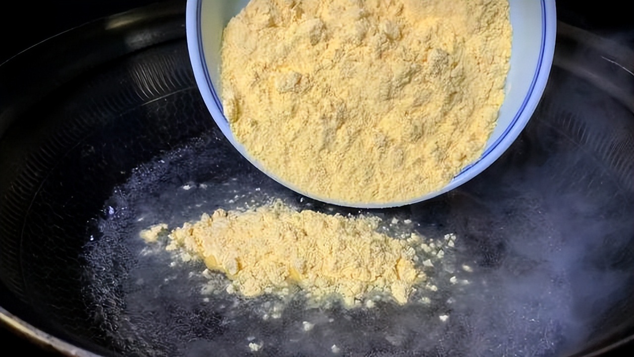 准备两勺玉米面,放到大碗中,在锅中加入和玉米面等量的开水煮开,将玉米面倒进锅中,用筷子搅拌均匀,烫好后放在锅中自然放凉备用。
