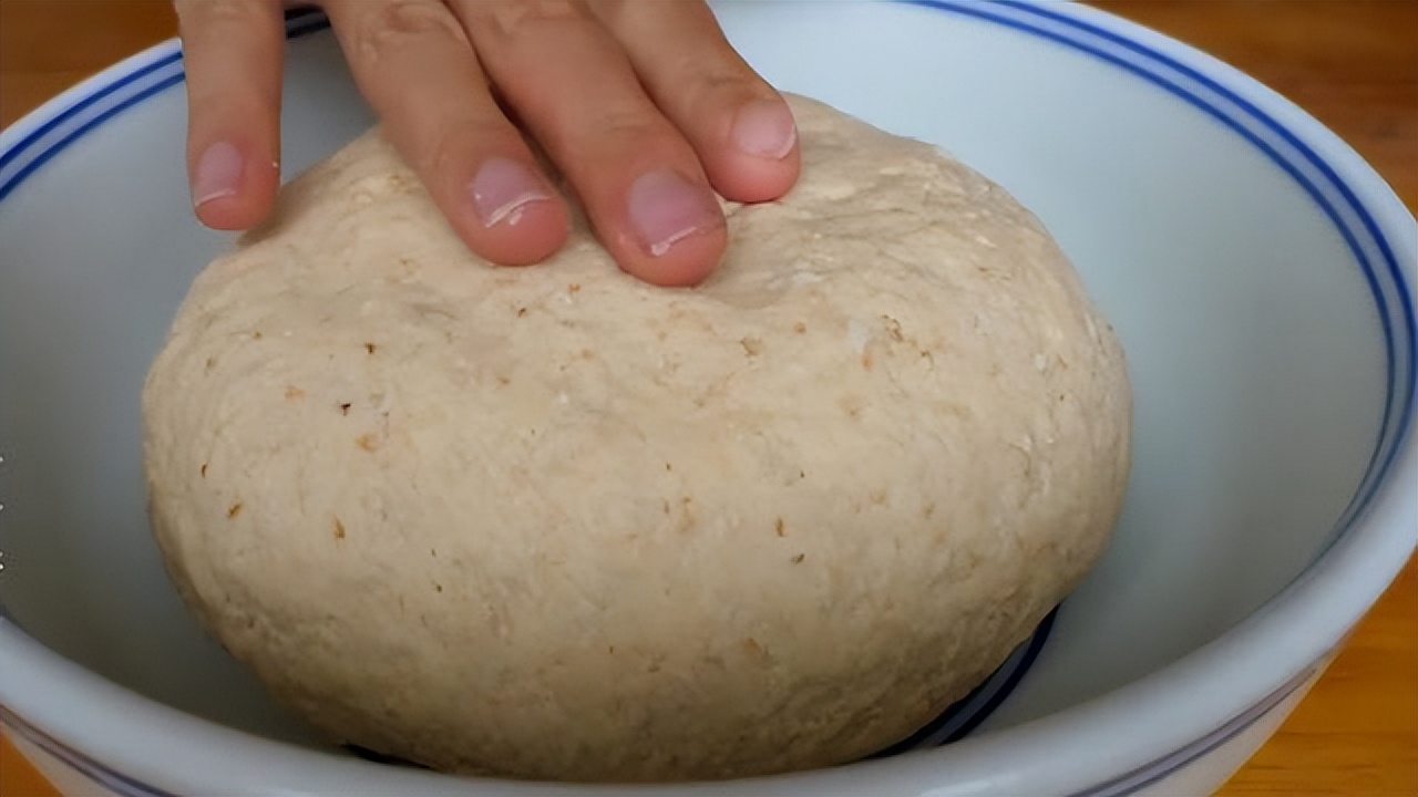 再加入300克普通面粉,少量多次倒进大碗里,用筷子搅拌均匀,再加入适量清水,搅拌成面絮状,下手揉成面团,刷上一层食用油,盖上保鲜膜发酵至两倍大。