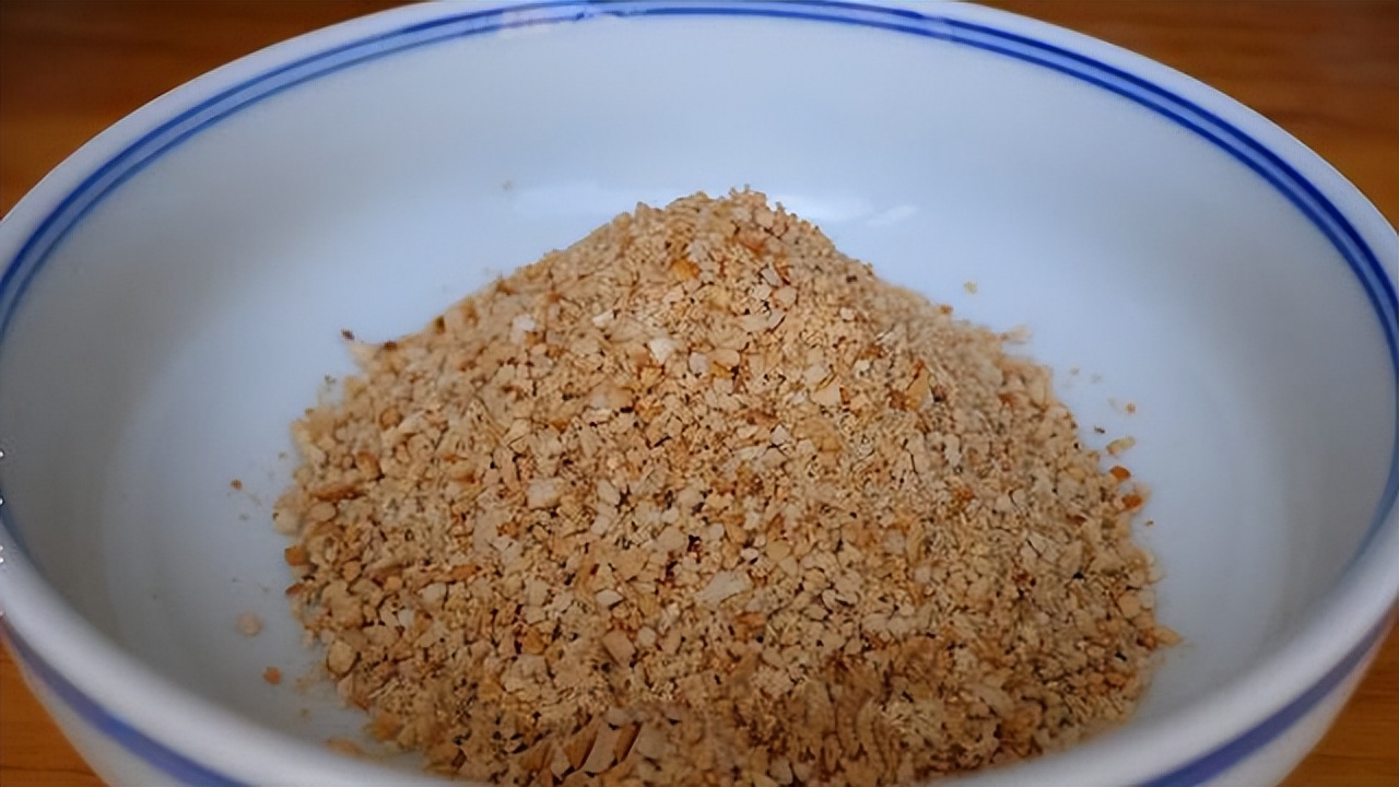 锅中加入花生米,小火把花生米炒熟,炒好后盛出倒入破壁机中,打成碎末。