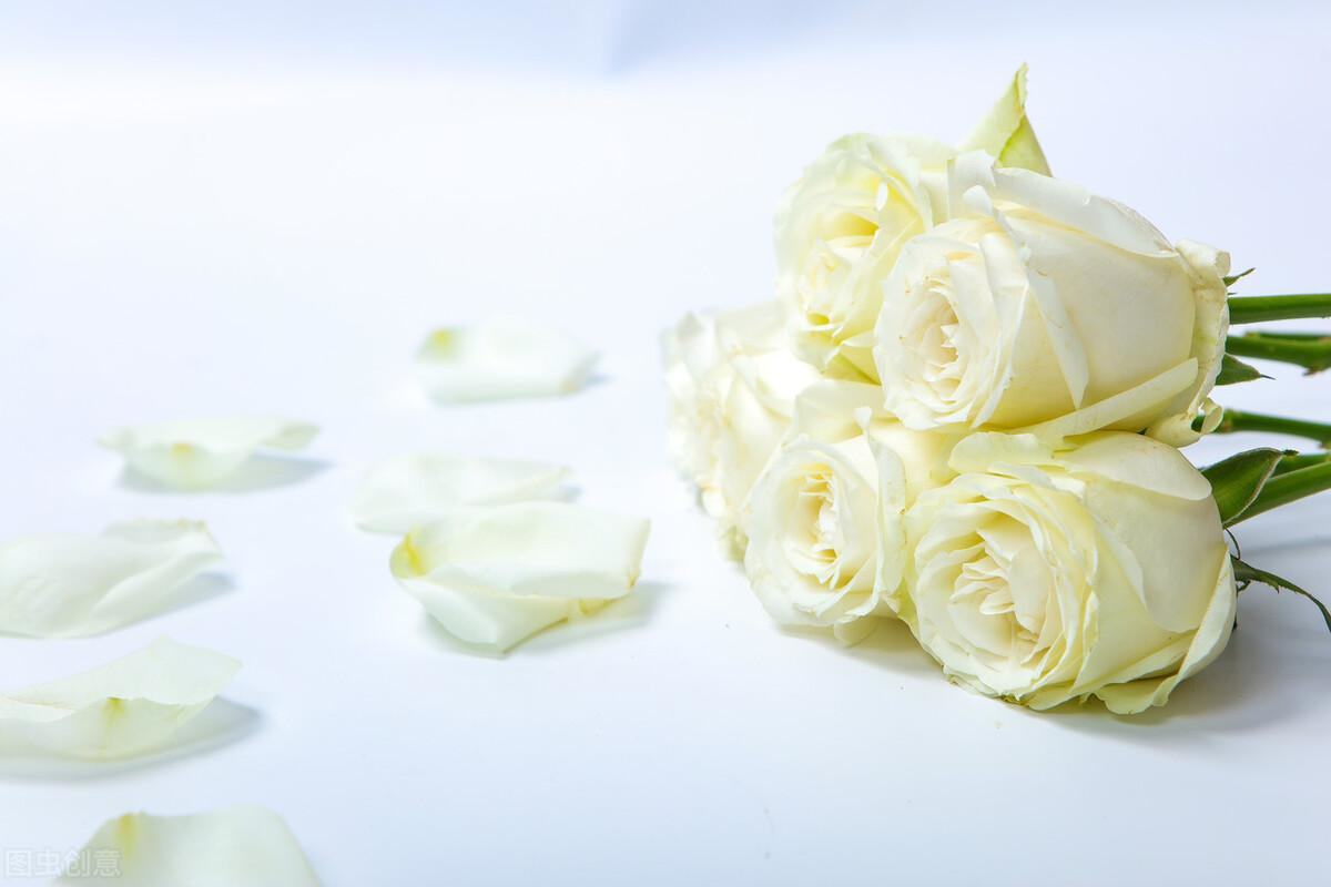 白玫瑰的花语是纯洁的爱,花朵姿态优雅花色干净,适合用在神圣的不可玷污的婚礼场合,为步入婚礼殿堂的信任送去最真挚的祝福,寓意着百年好合。