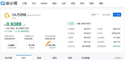 从此,广大用户可以实时查阅非小号 GA 相关行情信息,并对自己手上的 GA 数据分析、数据挖掘等代币深度服务。详情请访问:https://www.feixiaohao.com/currencies/gamearts/。