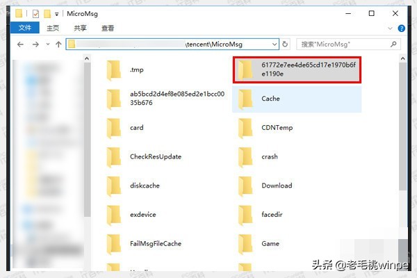 将手机连接到电脑上,打开微信聊天记录的所在位置,一般路径是在C盘的tencentMicroMsg一长串字符的文件夹(微信账户)。