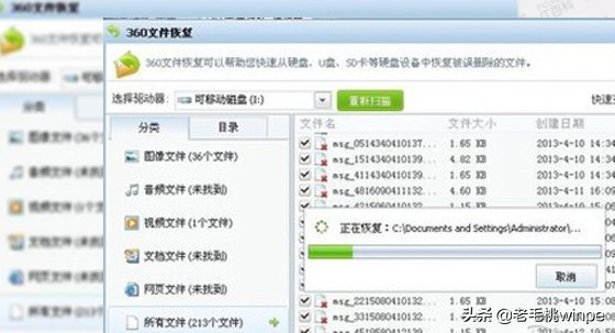 除此之外,我们还可以使用第三方工具进行恢复,比如使用360文件恢复。