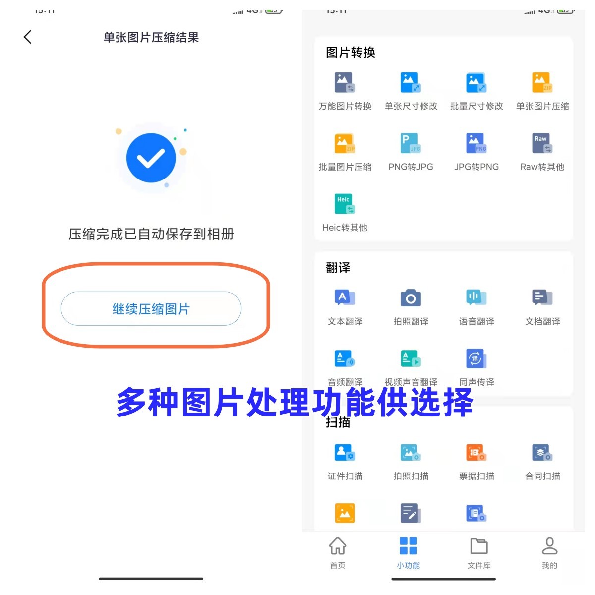 之后一般会立刻压缩完毕,图片会自动存入相册里,除了图片压缩还有多种功能可选择哦~