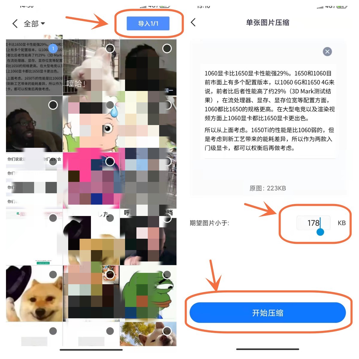 这里以单张图片压缩为例,我们可以自定义压缩幅度并预览压缩前后的大小。