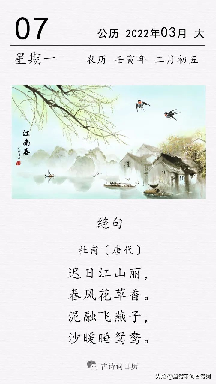 一个“丽”字,正是通过诗人之眼提炼出来的关键字,也将一幅静谧迷人的春景图呈现在世人面前。