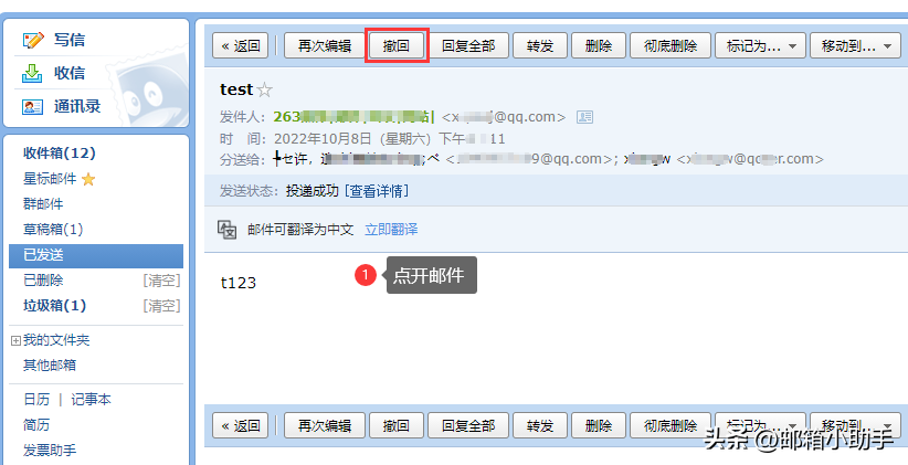 这封邮件的情况下,点击撤回按钮,也是可以撤回的;