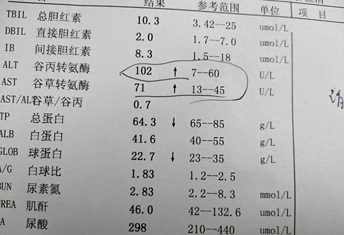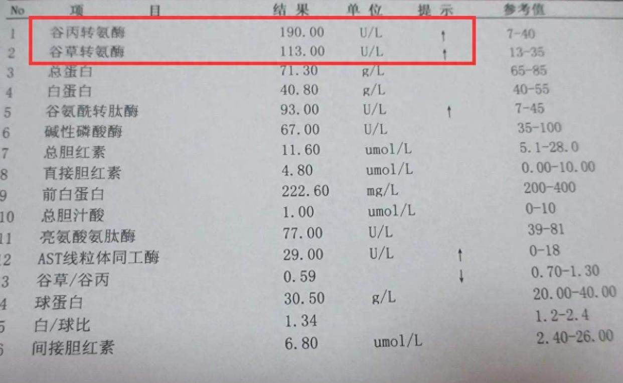 谷草转氨酶和丙氨酸转氨酶:能灵敏地反映肝细胞的损伤和程度,病毒、饮酒、药物性肝损伤、脂肪性肝炎等都会导致转氨酶升高。