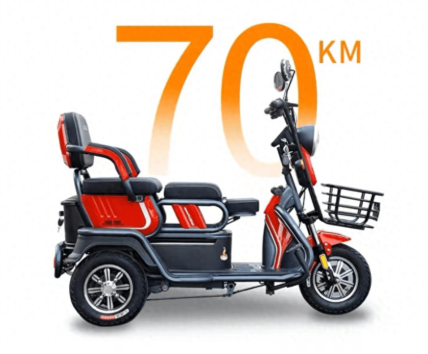 车辆采用折叠推拉式座椅设计,可以轻松乘坐3人的出行,标配800W纯铜电机,动力充足,加持智能调节速度,最高时速在15km/h,很适合老年人的慢速安全出行,2199元配置48V12AH电池,可以续航30公里,如果觉得续航太少,还可以选择60V22AH黑金电池,理论续航可达70公里。