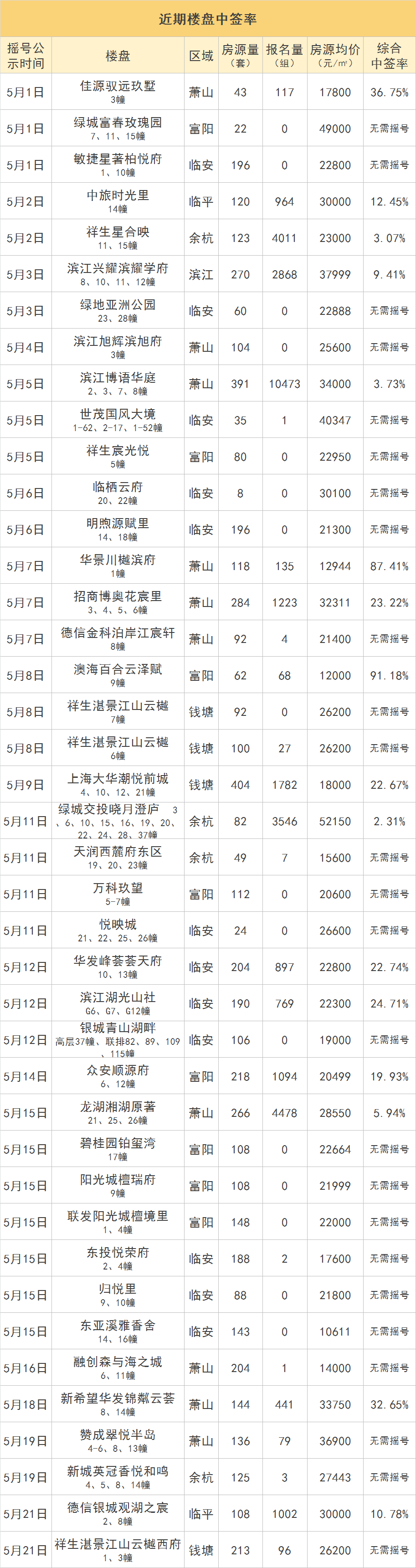 附:5月杭州新盘中签率