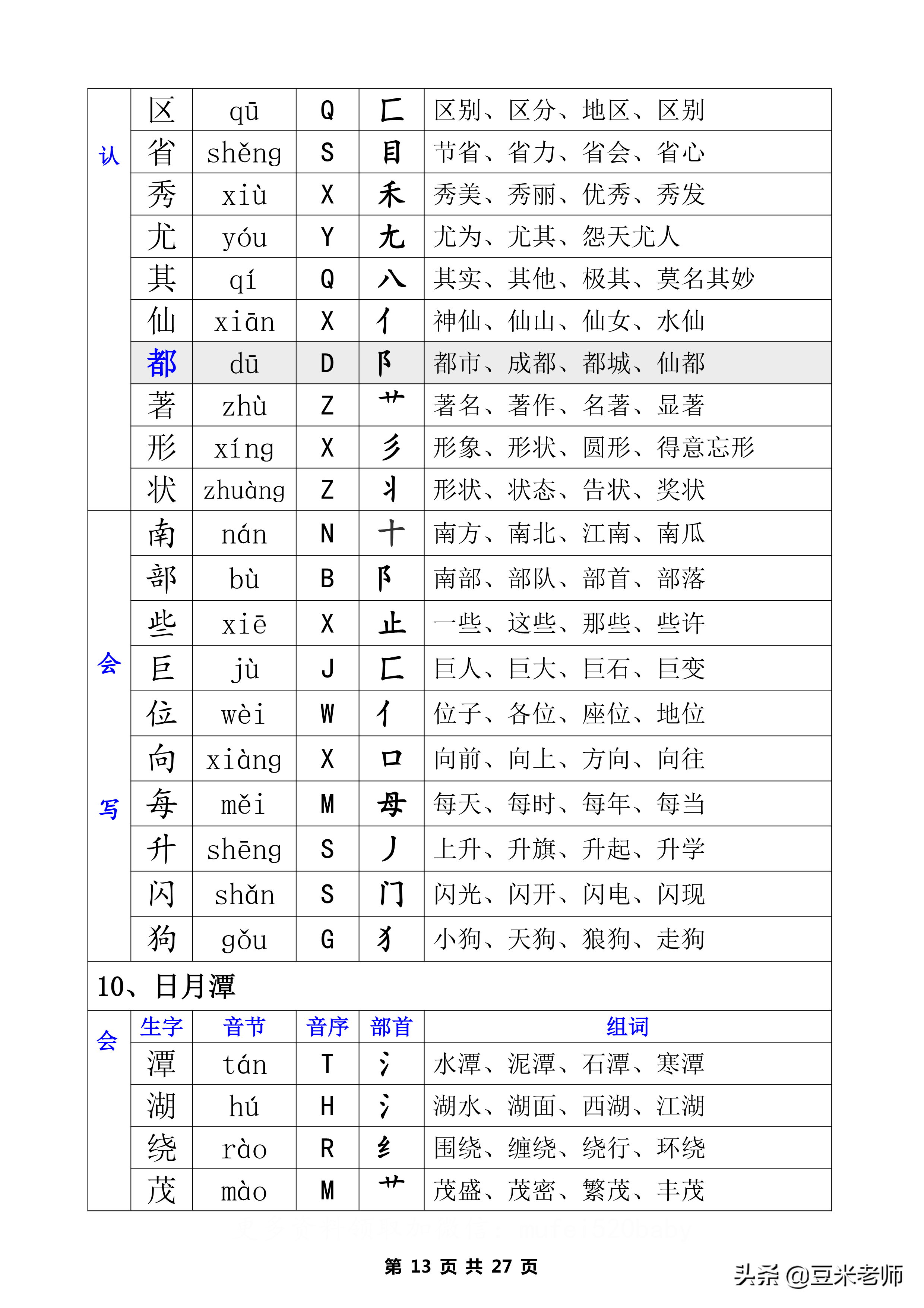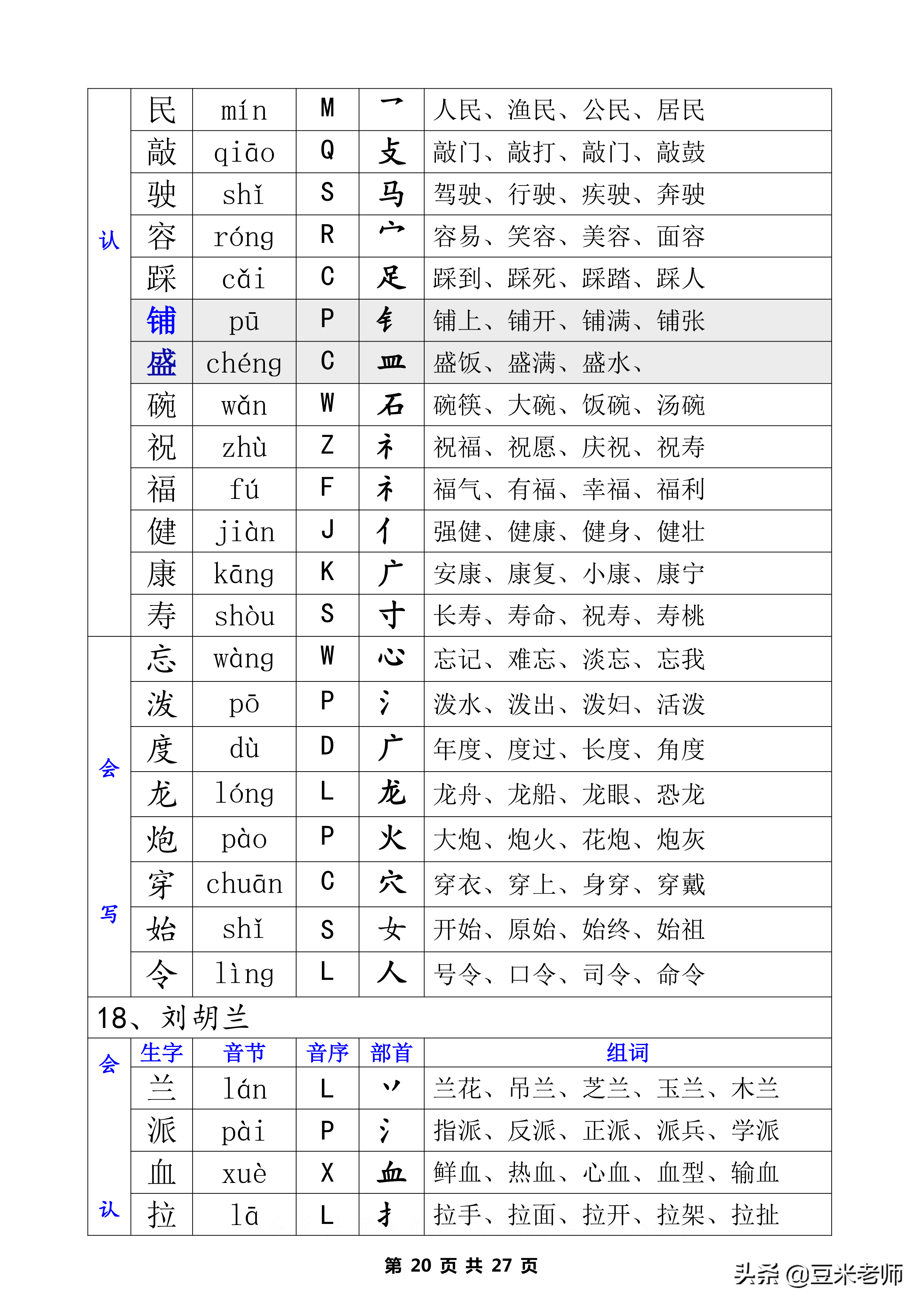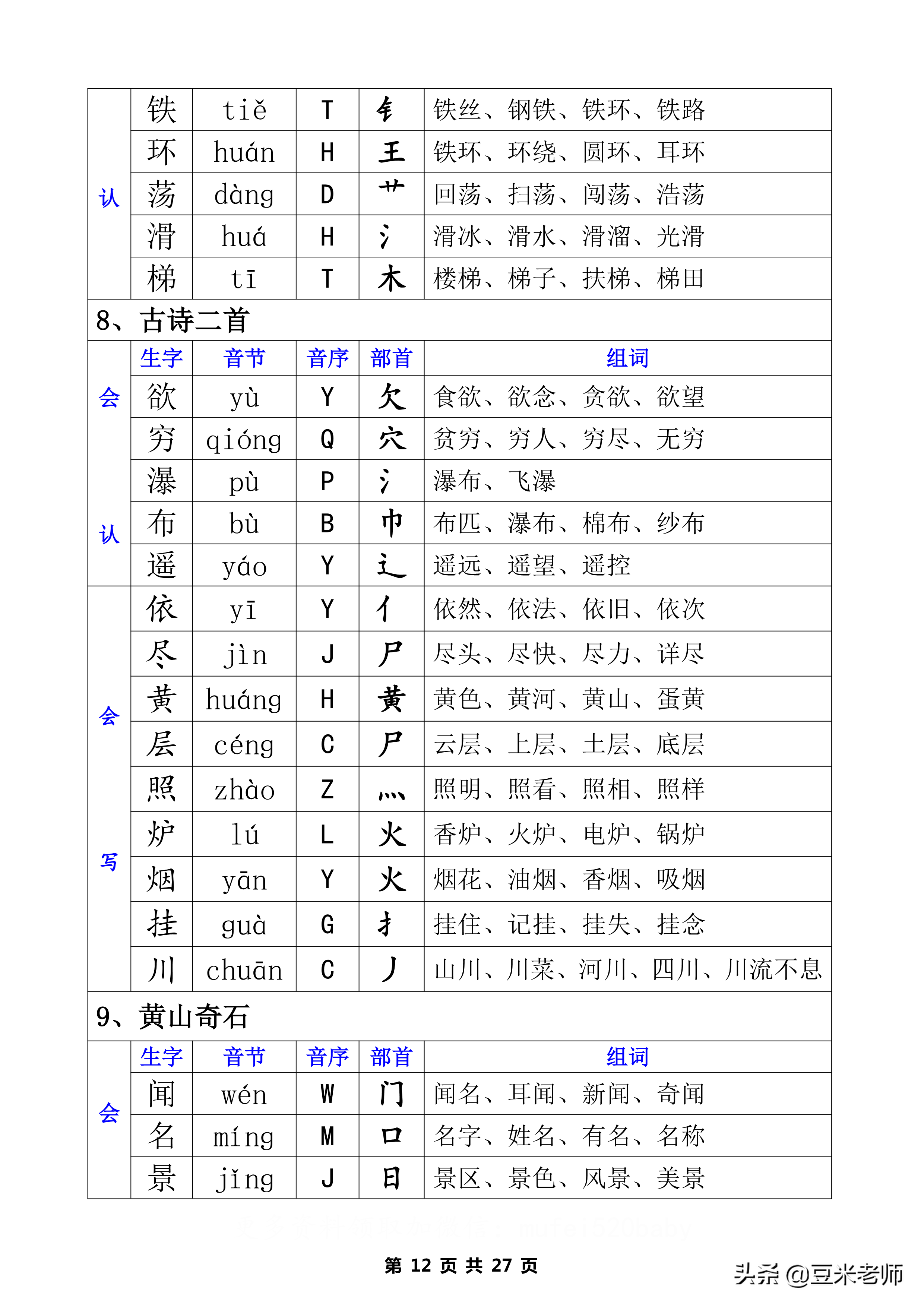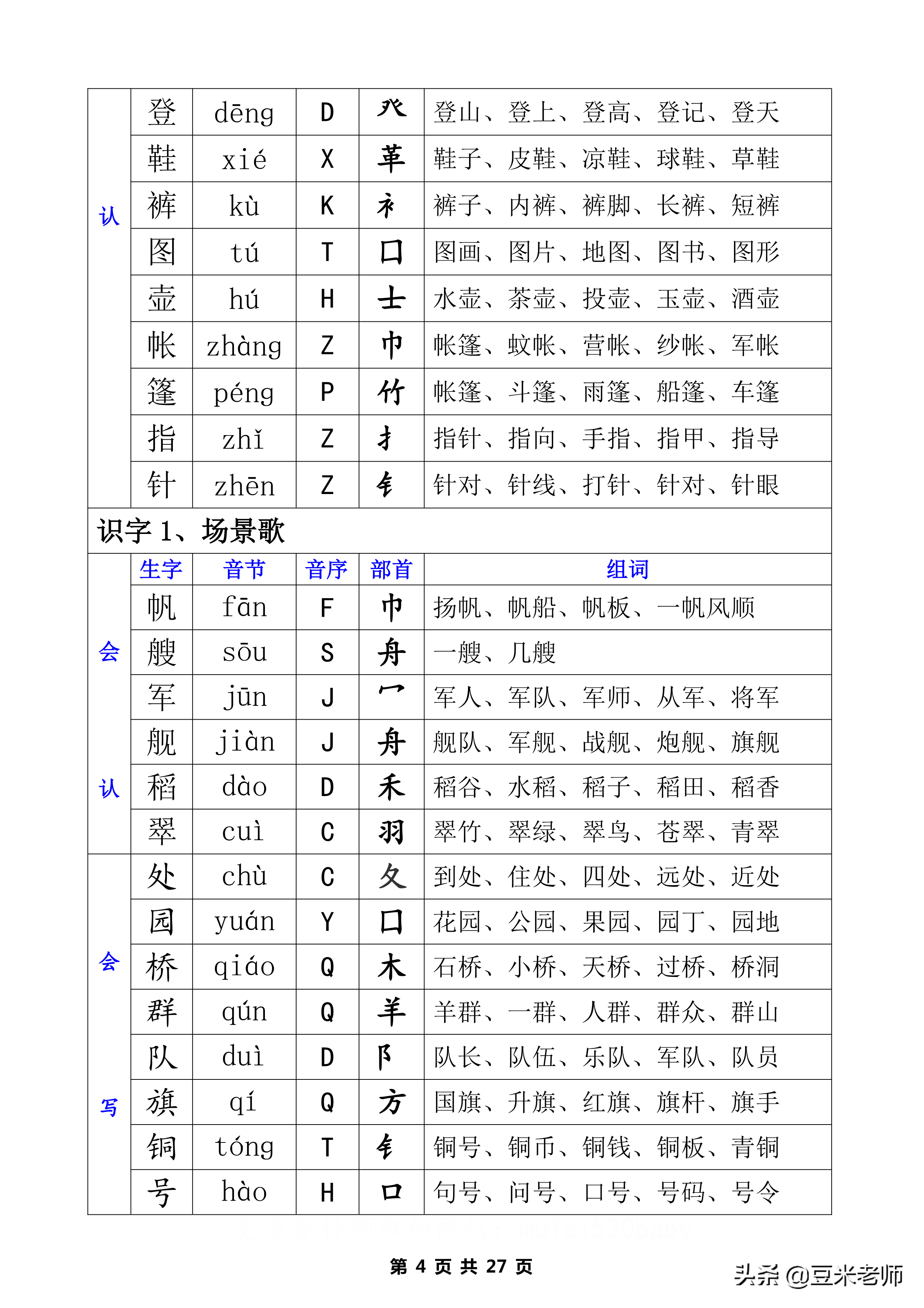 不过,小编在网上搜集了一份去年的生字总结表,包含一类生字和二类生字的音节、音序、部首和组词,也是非常不错的一份资料,可以分享给大家,以供参考。