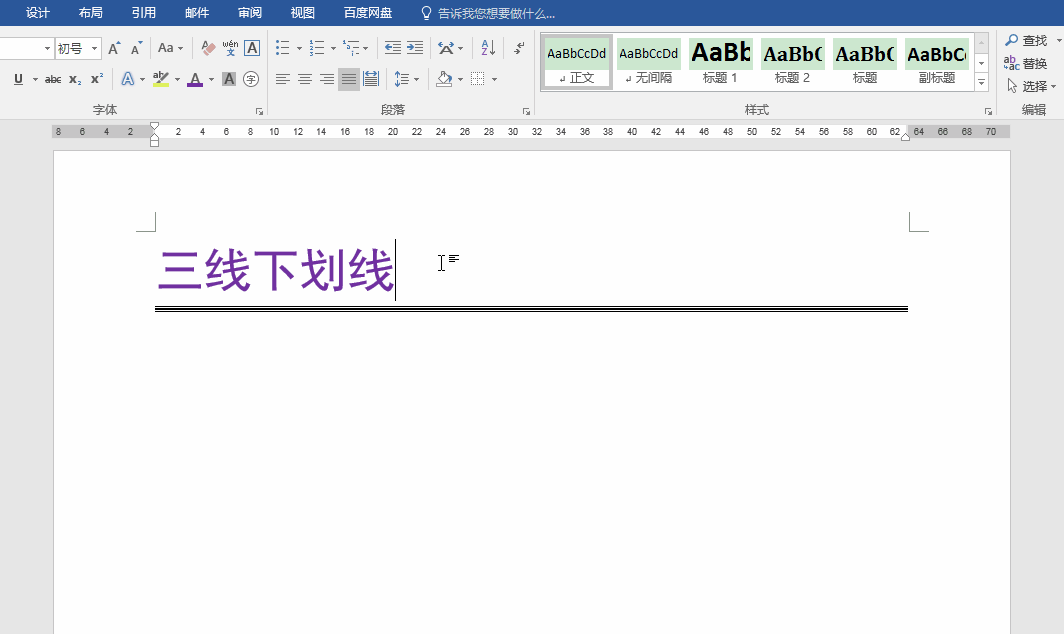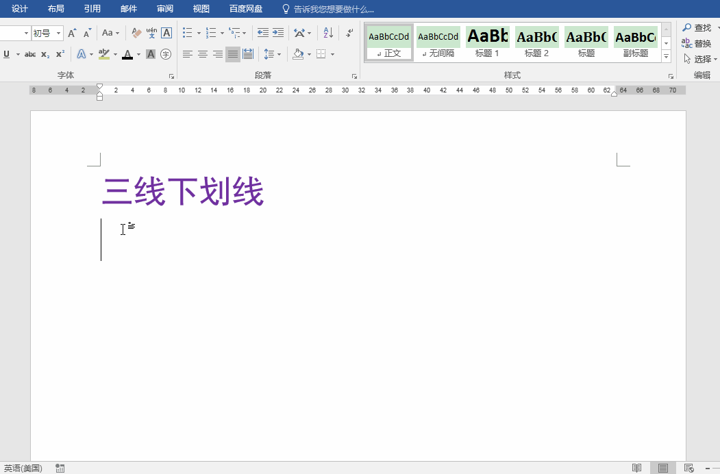 将光标定位在要绘制三线下划线位置的行首,在英文输入法状态下输入三个”#”,按回车键确认即可。(#与数字3在键盘上的同一按键上,同时按Shift+数字3键即可输入)