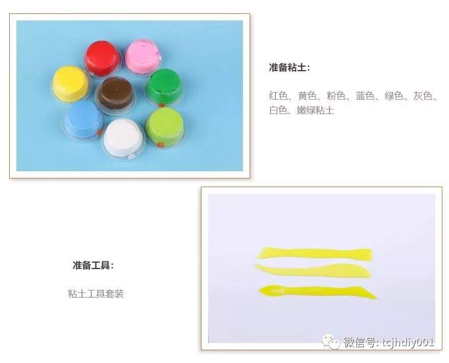 9、褐色粘土搓成细条,粉红色搓细条,绿色和粉色搓好做装饰。