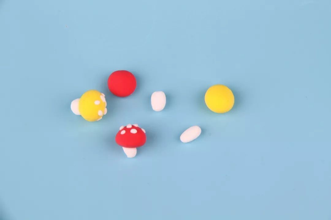 11、最后捏出一些可爱的装饰物,比如小蘑菇,小花小草之类的,随意发挥哦!