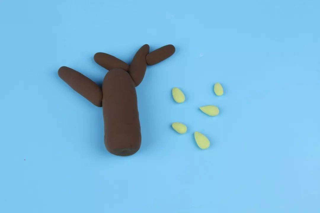 8、褐色的粘土做出树干和树枝的模样,然后用绿色搓出细小的树叶。