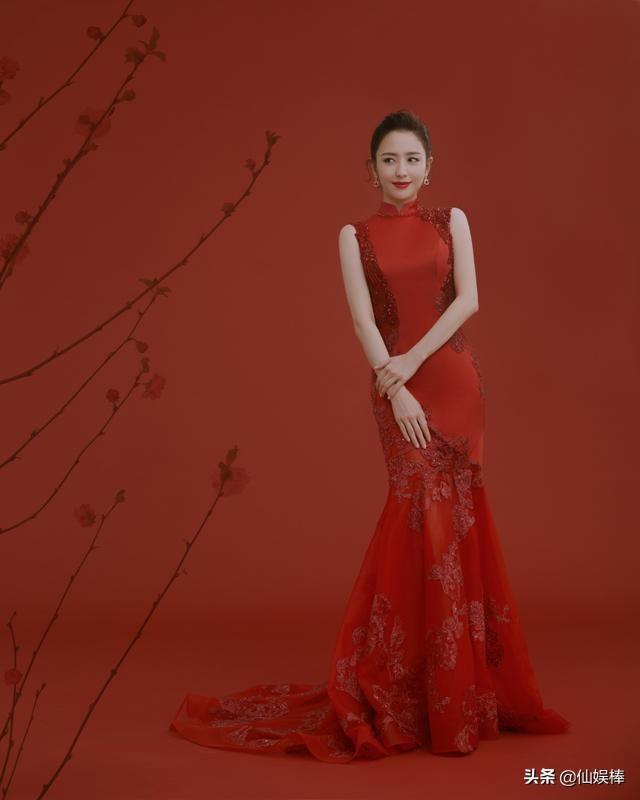 穿起春晚主持人最常穿的红色礼服,这套也非常有待嫁新娘的feel,外秀慧中。