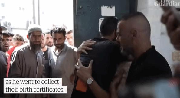 据现场视频和半岛电视台、美国有线电视新闻网(CNN)等媒体 14 日报道,就在出门几个小时后,办理好出生证明的库姆桑接到一个电话,得知以色列空袭击中了他们居住的公寓楼,身为药剂师的妻子(28 岁)、两个仅出生 3 天的孩子,以及岳母全部不幸死亡。