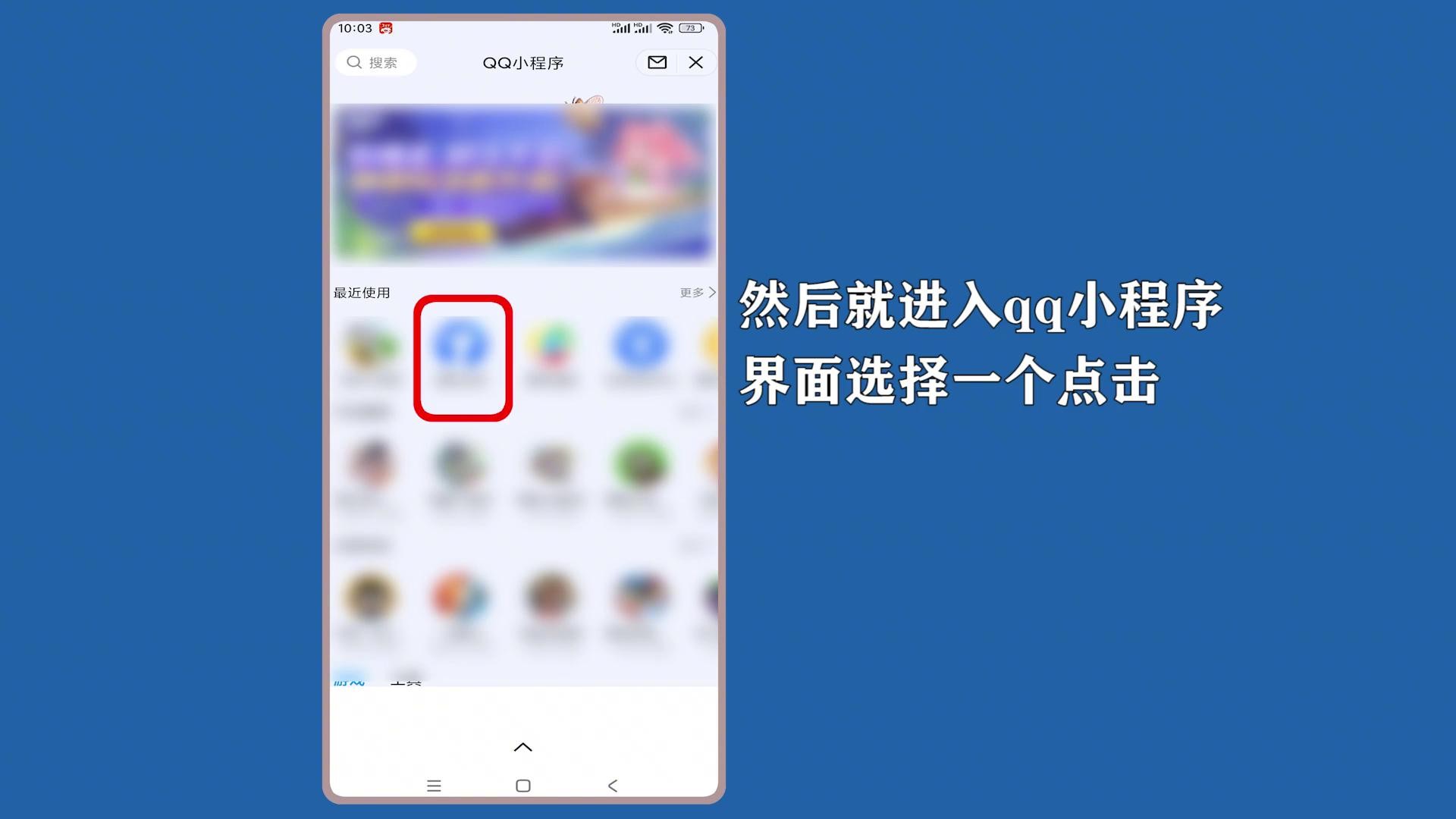 打开手机桌面的"qq",进入qq向下滑动,然后就进入qq小程序,界面选择一个点击,打开小程序按提示操作去使用即可。