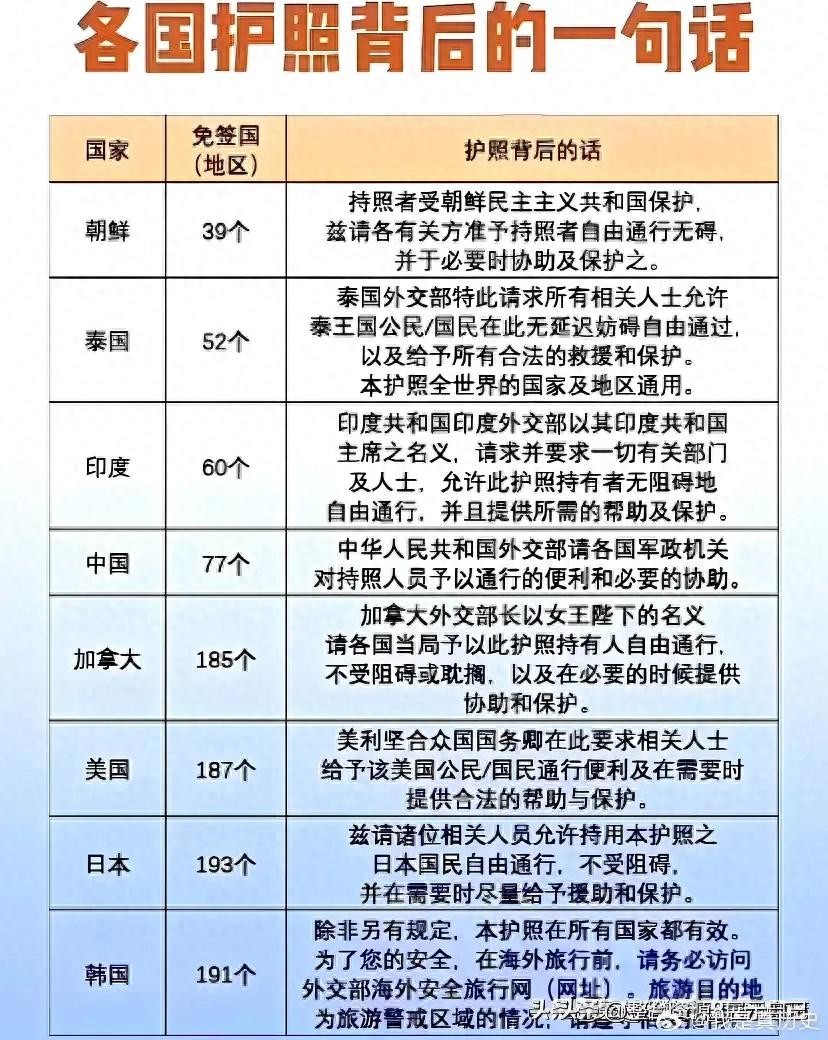 各国护照背面写的内容