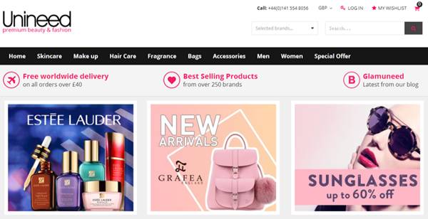 Unineed是英国一家奢侈品折扣网站,成立于2011年,经营范围包括个人护理用品、时尚箱包、彩妆、配饰等等。