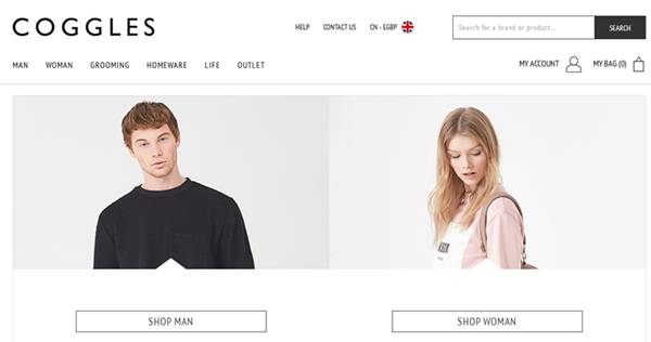 Coggles是THE HUT旗下服饰类网站三剑客之一,适合海淘新手们。它家出售配件、鞋类、夹克、牛仔裤、针织品、衬衫、T恤等产品,有时候折扣力度挺大。