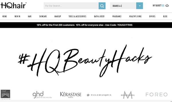 HQhair.com英国著名的三大美妆网之一,是英国著名网上零售公司The Hut集团旗下的美容护理网站。看名字就知道比较适合购买美发类产品。