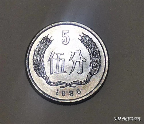 1980年5分硬币改刻的地方是最后的数字0明显有改动痕迹,很可能是用9改成了0,也就是说这一枚5分硬币大概率是1989年版。
