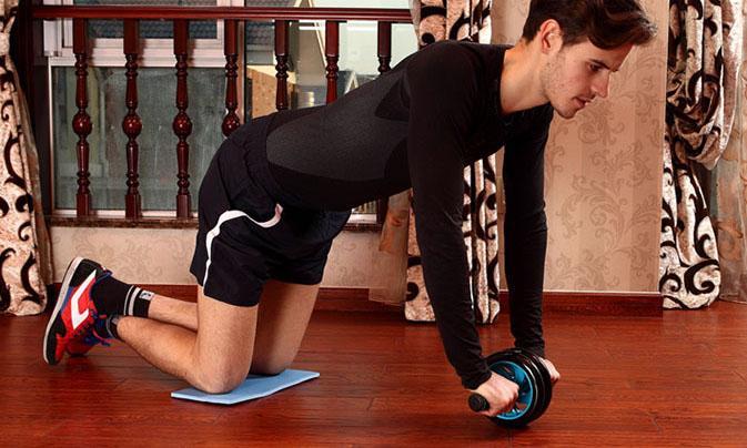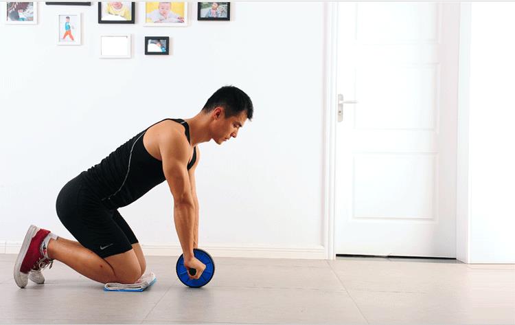 一般对于初学者来说,最好先从跪立锻炼法练起,在开始锻炼之前,要先进行一下热身运动,然后在地面上铺上一个垫子,双膝合拢跪在垫子上边,放松身体,双手握住健腹轮的扶手处,然后向前推动滑轮,根据自己的情况,能把滑轮退多远就推多远,一般是推到身体与地面平行的位置最佳,然后再将滑轮拉回,身体恢复之前的跪立姿势,依此反复进行锻炼。