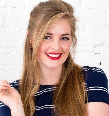 第八步:烫卷的发丝沿着脸庞侧边散落下来,最后将剩余的发丝分成均等两部分,拉到两侧身前,一款优雅时尚的长发公主头半扎发发型就扎好了。