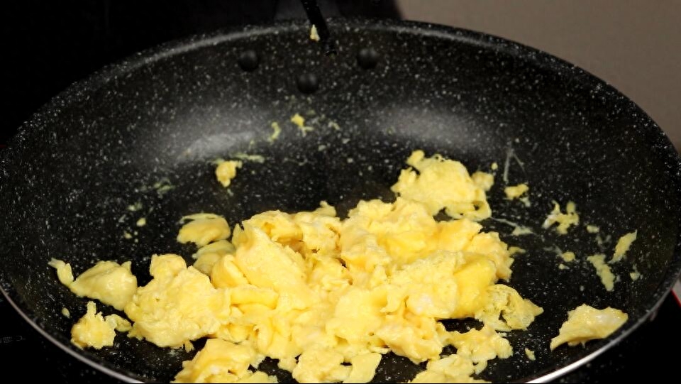 2、鸡蛋先煎一下然后再炒其他的配料
