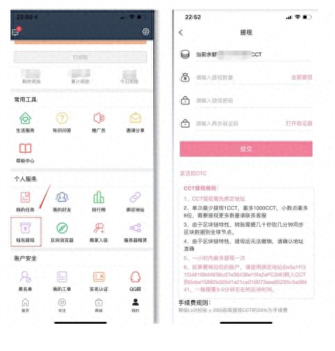 OTC:交易功能。夸克链信:获取 CCT 的功能。